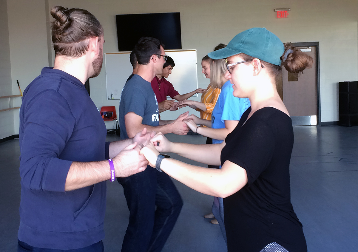 Students in the “Salsa: History in Motion” unclass step outside the classroom and into a dance studio to learn the movements of salsa dancing. — Photo by Dr. Martha Santos