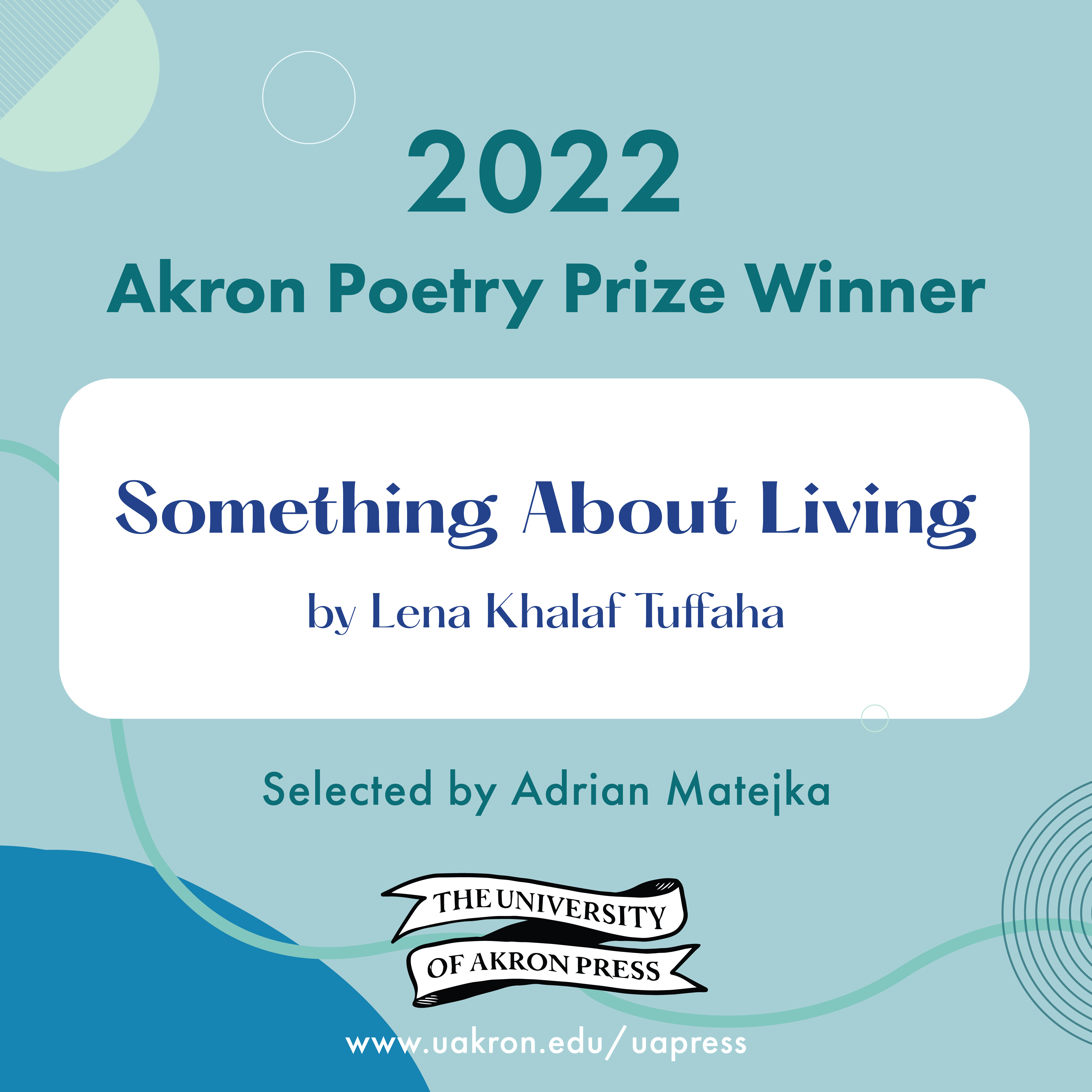 Adrian Matejka, this year’s judge, has chosen Something About Living by Lena Khalaf Tuffaha of Redmond, Washington, as the 2022 Akron Poetry Prize winner. The contest received a total of 583 entries in 2022.