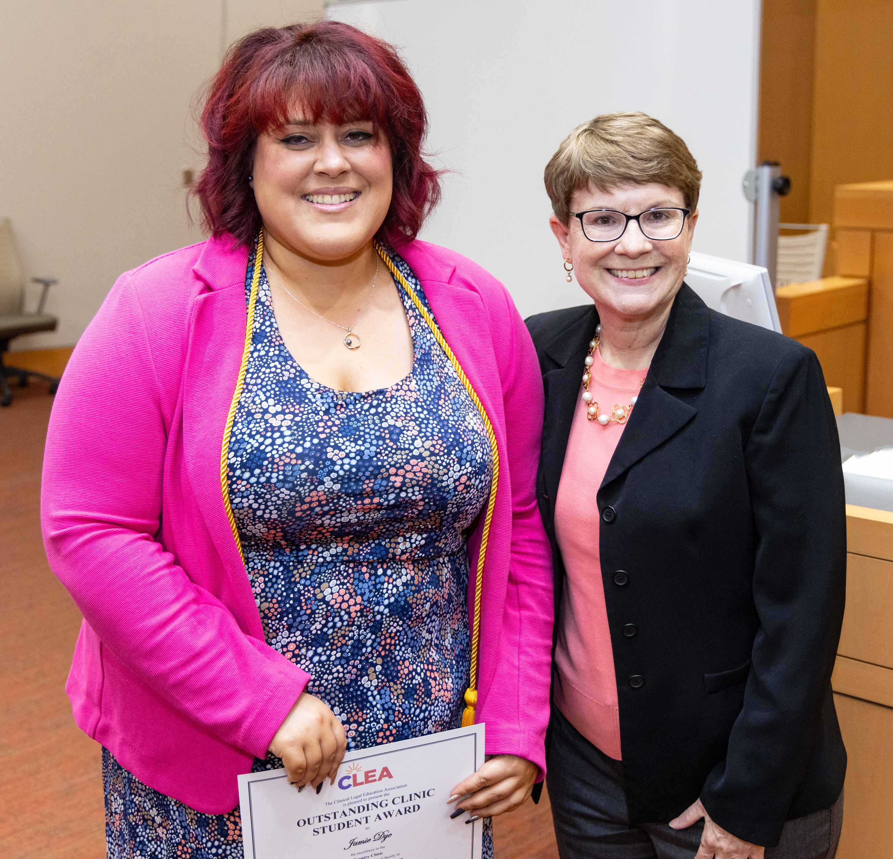 Each year, Associate Clinical Professor and C. Blake McDowell Jr. Professor of Law Joann Sahl presents the Outstanding Clinical Student Award given by the Clinical Legal Education Association. This year’s award recipient is Jamie Dye.