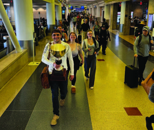 Flying the trophy back to Akron Law, the team said people in the Los Angeles Airport would applaud them without knowing what they won.