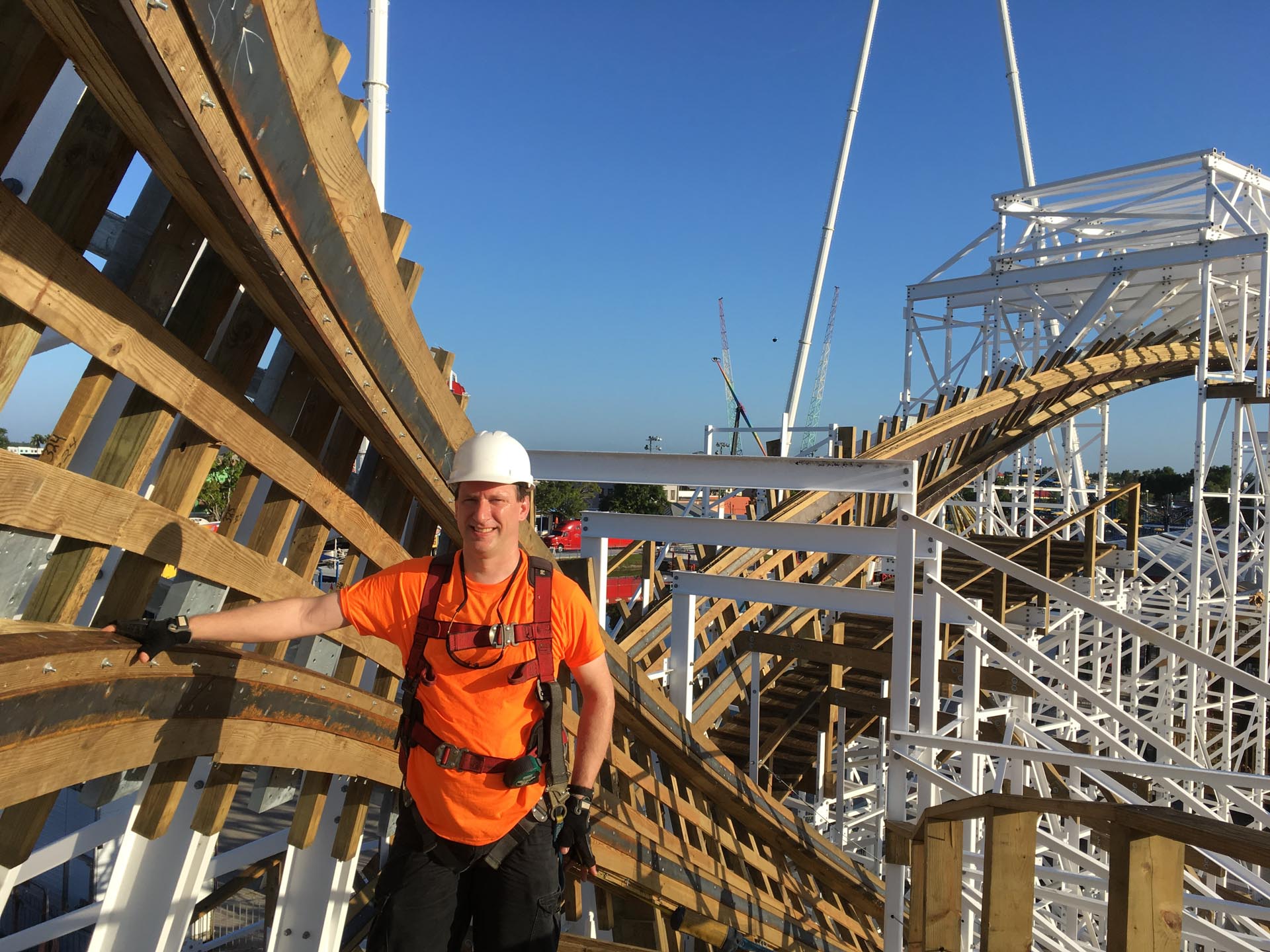 After completing several co-op experiences with an aerospace pump company, Graham graduated and set his sights on the roller coaster industry. He landed a dream job at Custom Coasters International (CCI) in Cincinnati, where he contributed to the design of numerous wooden roller coasters, including The Villain at Six Flags Ohio (the former Geauga Lake amusement park).