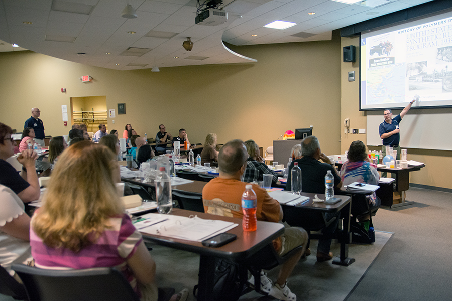 “Inquiry Based Learning” is led by John Fellenstein, Content Specialist for the Akron Global Polymer Academy (AGPA), and Dr. Kevin Cavicchi, the principal investigator on the RET Site and Associate Dean of Academic Affairs for the College of Polymer Science and Polymer Engineering. It is one of AGPA’s educational ventures aimed toward adults. The AGPA always strives to expand curiosity and knowledge about science and polymers, which includes educating kids K-12 and supporting their teachers.