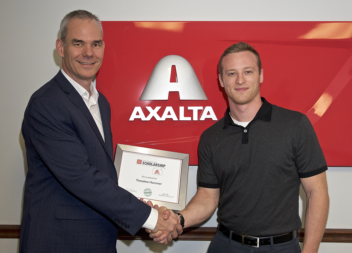 Theodore Hammer, 2017 PCI/Axalta Scholarship Winner receives award from Michael K. Bollan, Axalta Business Director, Powder Coatings-Americas. (Photo: Axalta)