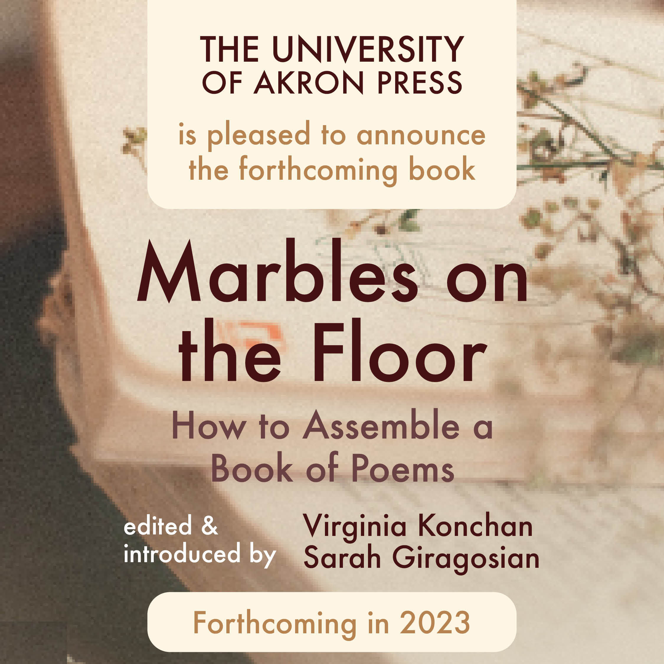The Akron Series in Contemporary Poetics at The University of Akron Press is excited to announce that it will publish Marbles on the Floor: How to Assemble a Book of Poems, a volume of essays edited and introduced by Sarah Giragosian and Virginia Konchan.