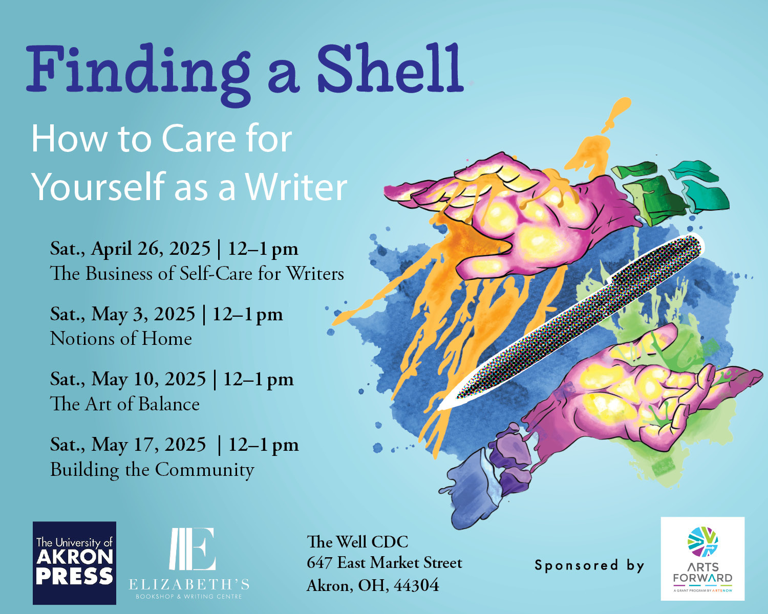 The University of Akron (UA) Press, in collaboration with Elizabeth’s Bookshop & Writing Center in Akron, is excited to announce it will launch “Finding a Shell: How to Care for Yourself as a Writer,” a four-part workshop series on self-care for writers, beginning Saturday, April 26. Each of the four workshops is free and open to adults writing in English. The first 20 people to register for each workshop will also receive a free book from The University of Akron Press.