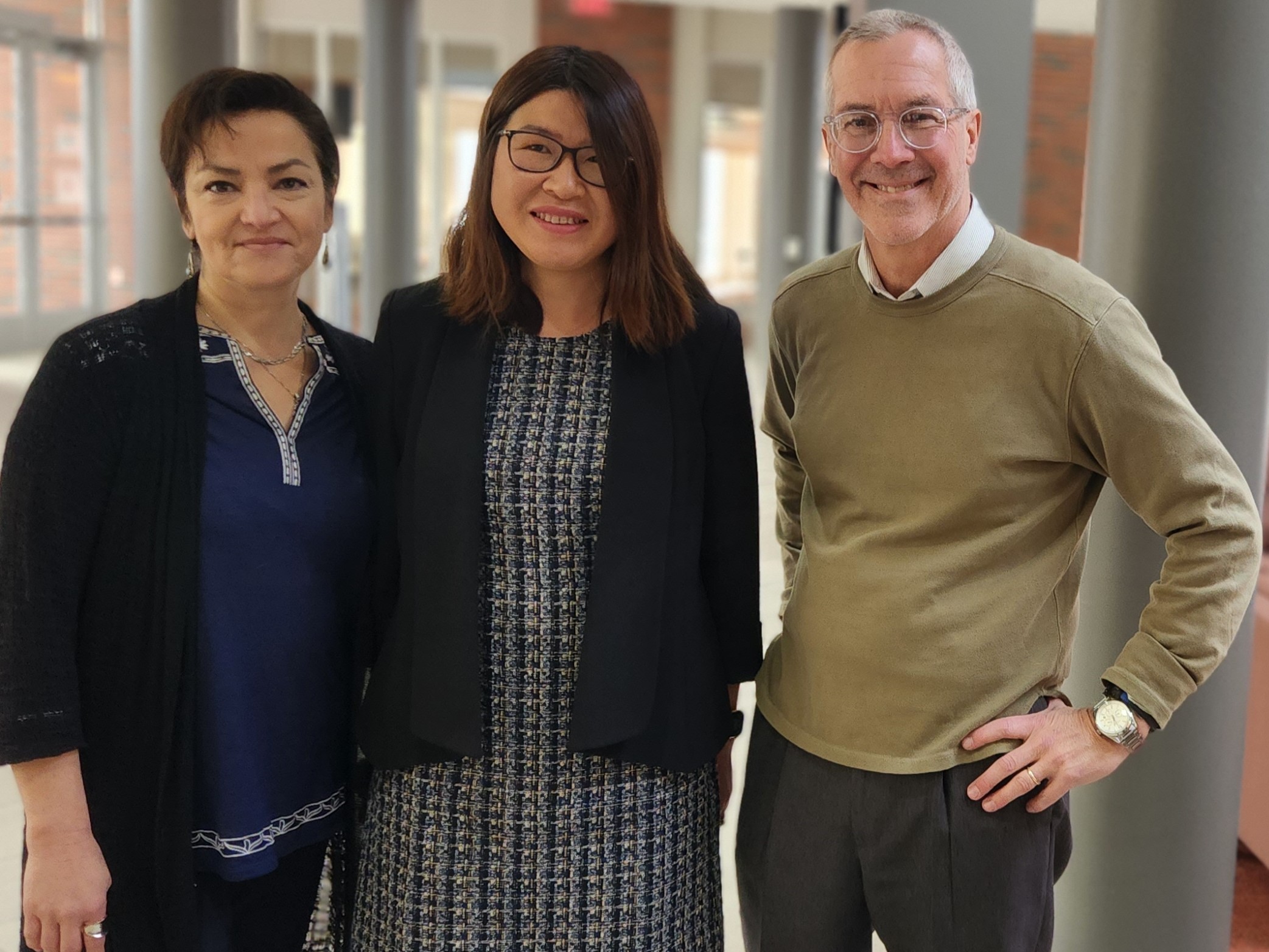 Left to right: Akron Law Associate Professor Emily Michiko Morris, third-year law student Ying Wang and Assistant Professor George Horvath.